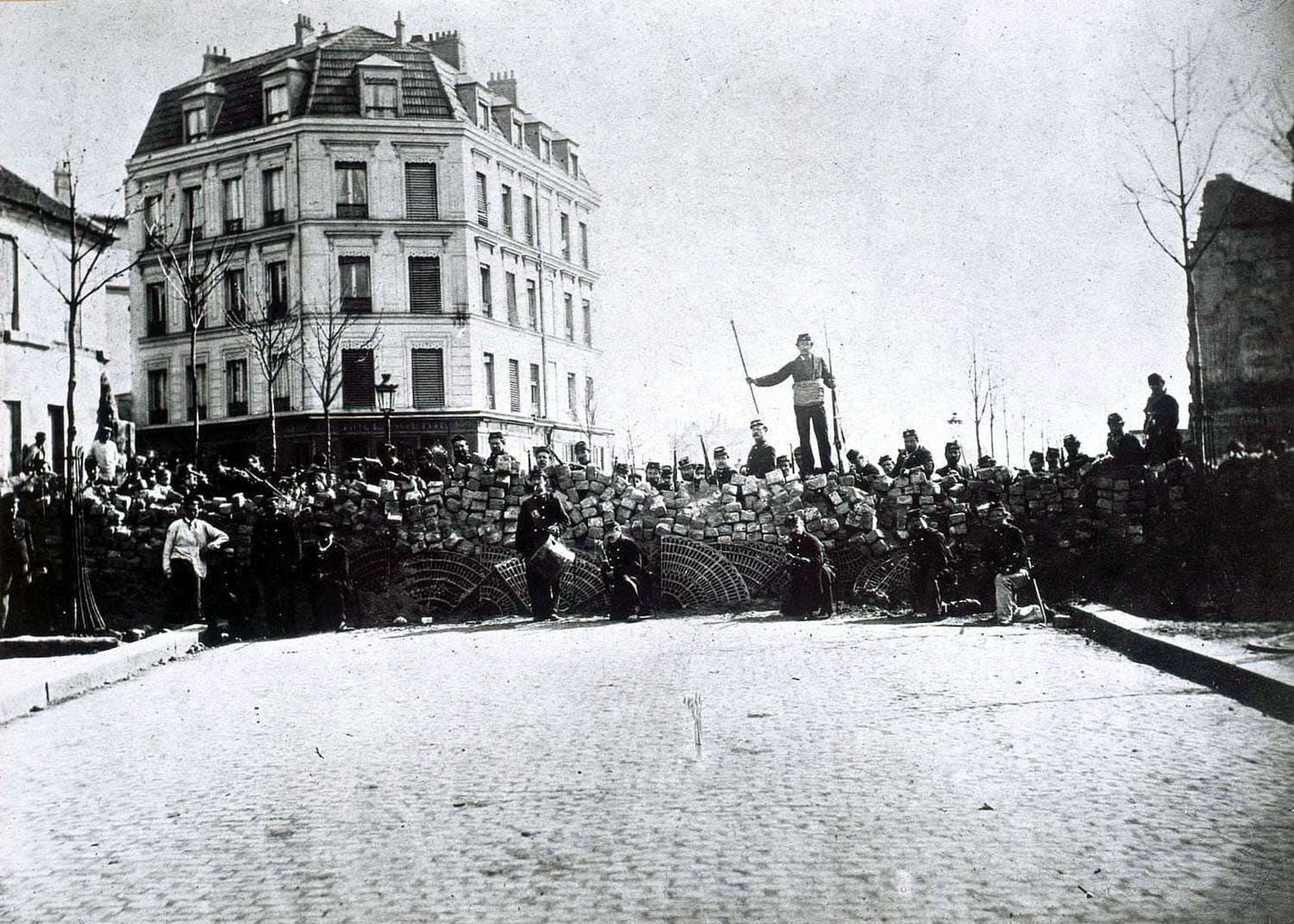 O próprio Thiers deu a ordem de, com a ajuda de antigos polícias bonapartistas e tropas do governo, se confiscar a artilharia da Guarda Nacional. Quando, na noite de 18 de Março de 1871, as tropas invadiram a cidade, depararam com forte resistência da Guarda Nacional. Além disso, grande parte das tropas do governo irmanou-se com o povo de Paris. Depois de fracassada esta acção, o governo e o clero fugiram para Versailles. Entretanto, a resposta da Guarda Nacional limitou-se à ocupação de todos os edifícios do governo e da administração. «A gloriosa Revolução dos operários do 18 de Março, incontestavelmente, tomou posse de Paris. O Comité Central foi o seu governo provisório».