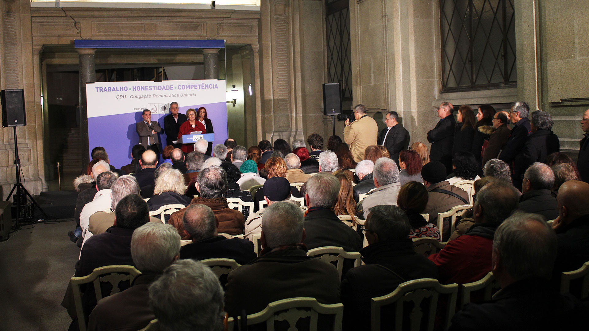 Em seguida, vai o meu agradecimento a todas e todos, amigos e camaradas, que quiseram partilhar connosco este momento da apresentação da candidatura da CDU neste belo espaço do edifício da Câmara Municipal do Porto, onde, de acordo com a Constituição de Abril, os eleitos pelos cidadãos do Porto gerem o município.