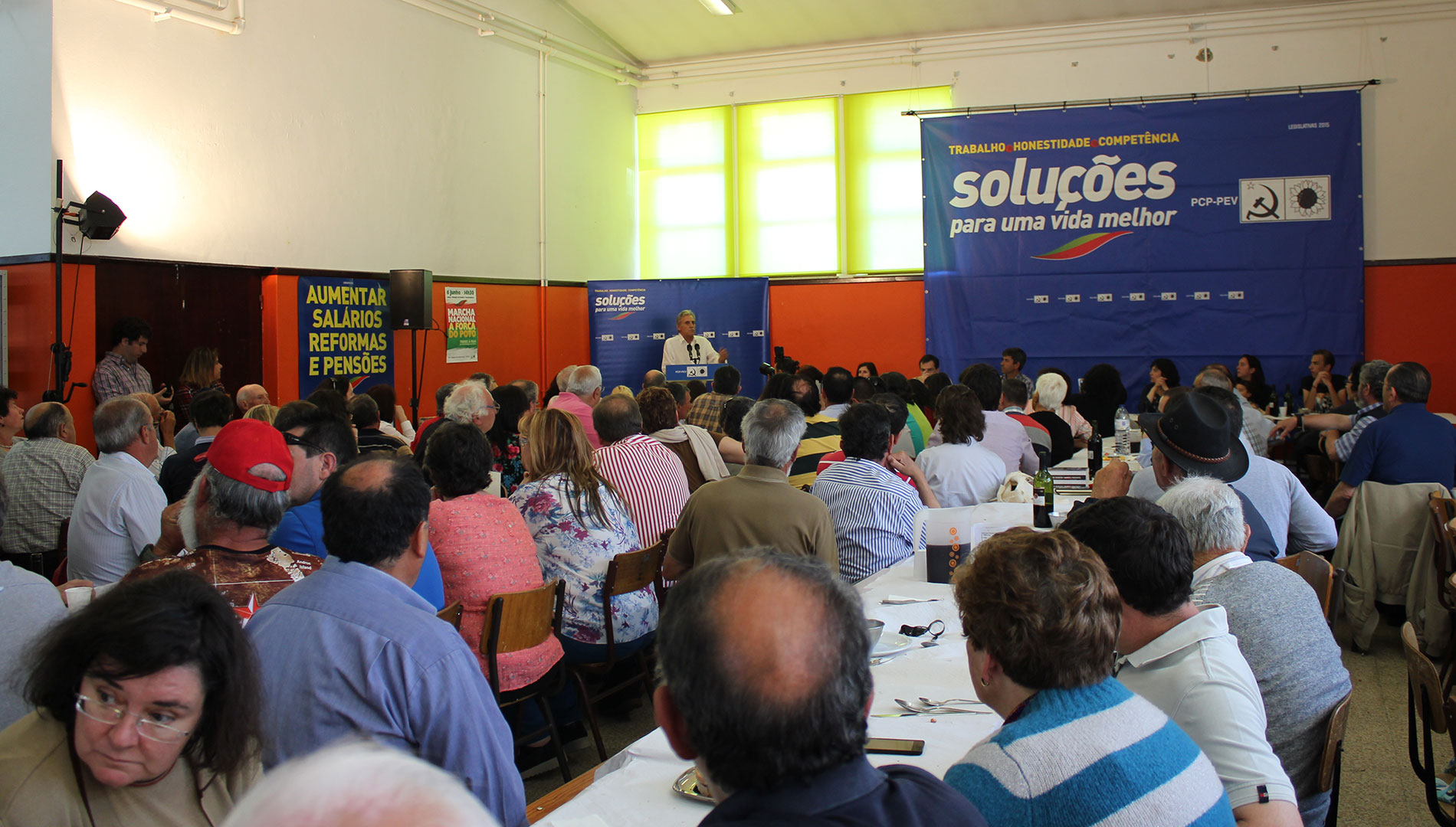 O que se mostra com estes Programas é a falsidade da afirmação de que as medidas ditas de austeridade eram temporárias, que durariam apenas enquanto durasse o Programa da Troika, mas o que temos aí na proposta do governo é a continuação do confisco nos salários e pensões, o aprofundamento da retirada de direitos aos trabalhadores, a continuação do ataque aos serviços públicos e às funções sociais do Estado – na Saúde, na Educação e na Segurança Social, e na Cultura" assinalou no almoço realizado na Escola Secundária da Sé.